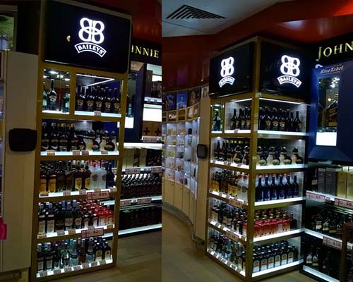 We have full clearance to work at all major India airports, Malls and duty free shops, this along with our excellent relationship with major Duty Free companies make CoolShock ideal partners when installing your travel retail stands and displays. We do all types of shop fittings including bespoke shop fittings, FSDUs (free standing display units), gondola units, wall bays, and display units. We have the ability to make sampling units/bars including all your POS (point of sale) materials.